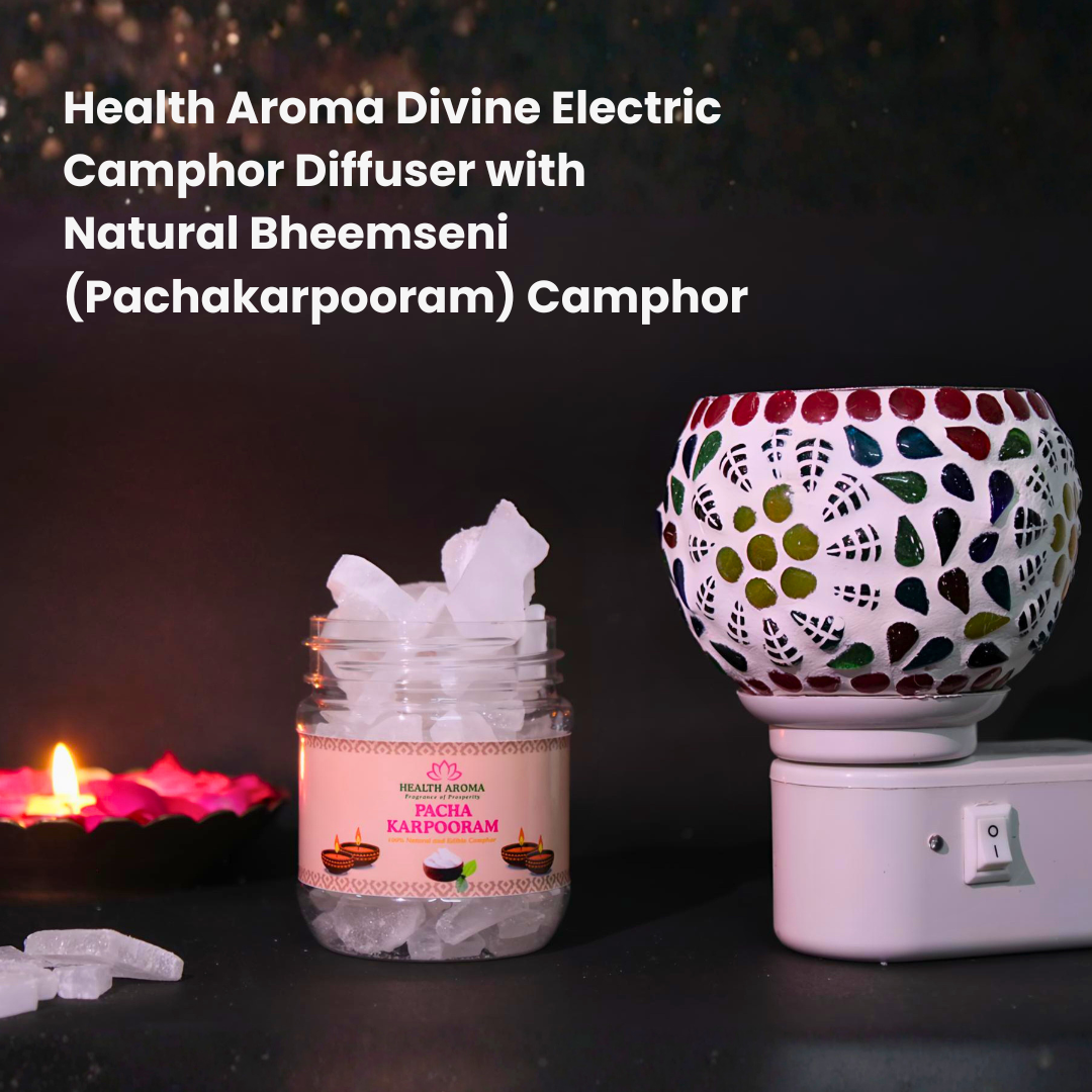 Divine Camphor Diffuser with Natural Bheemseni (Pacha Karpooram) | Multicolor Leaf Mosaic